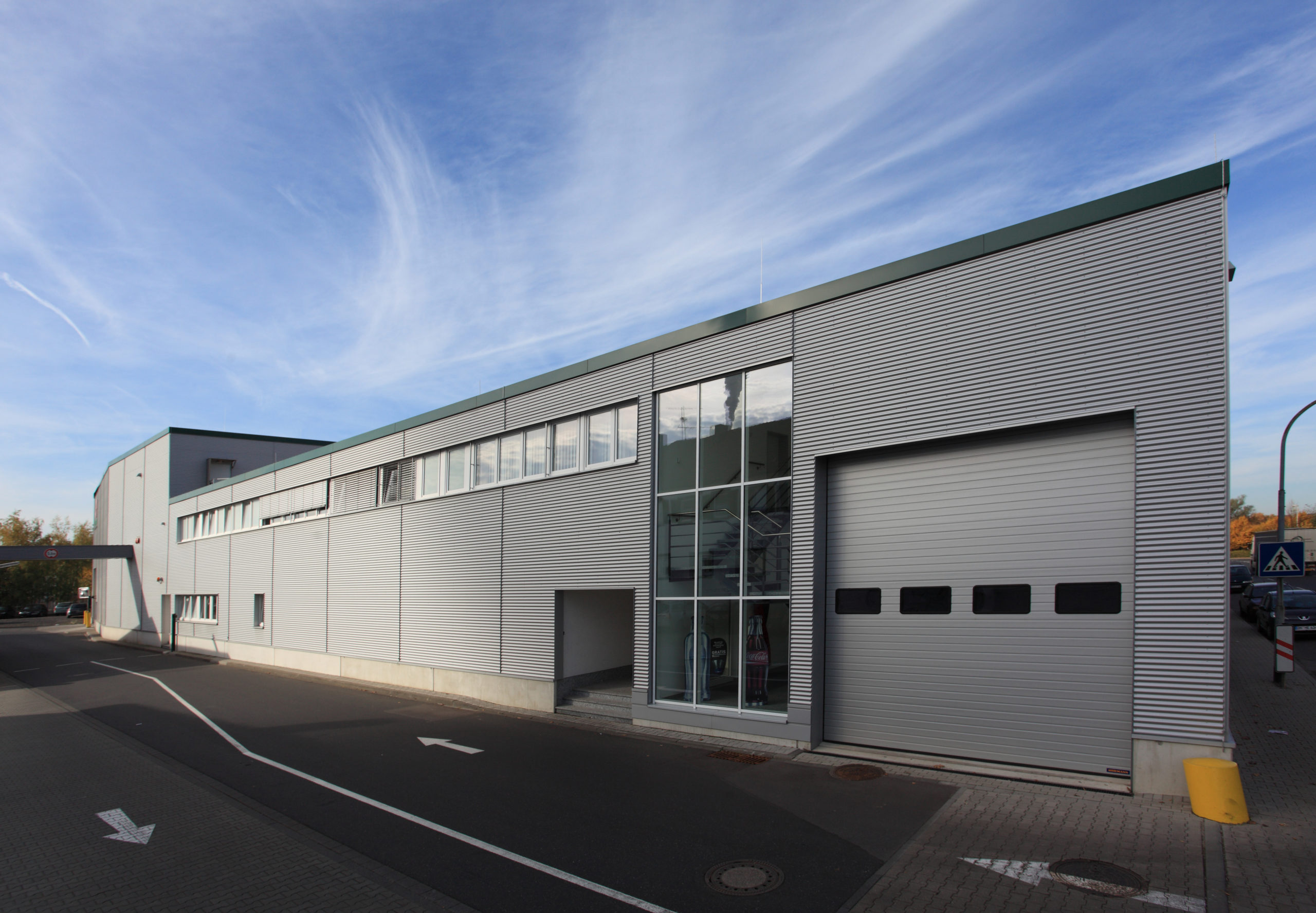 Für eines der führenden europäischen Unternehmen in der Wellpappen- und Verpackungsindustrie errichtet Ronge Gewerbebau teilschlüsselfertig am Standort Jülich eine High-End Offset-Druckerei. In der 4‑schiffigen Hallenkonstruktion kann auf drei Maschinen in unterschiedlichen Formaten und bis zu 10 Farben produziert werden. Ein 2‑geschossiger Lagerbereich und eine Büroempore komplettieren das Objekt.