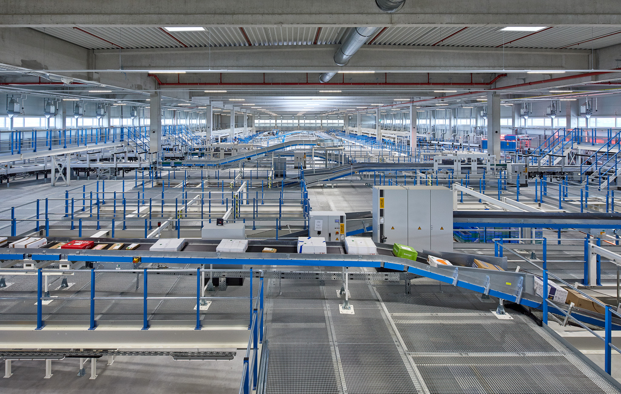 Eine besondere Herausforderung bestand darin, den mieterseitigen Sorterbau, welcher mit dem Gebäude verschmolzen ist, während unserer Bauphase zu koordinieren. Das Hauptförderband wurde dabei auf einer in 4 m Höhe liegenden Gitterrostebene erstellt. Das Haupttragwerk errichteten wir aus verstärkten Stahlträgern in jeder Achse.