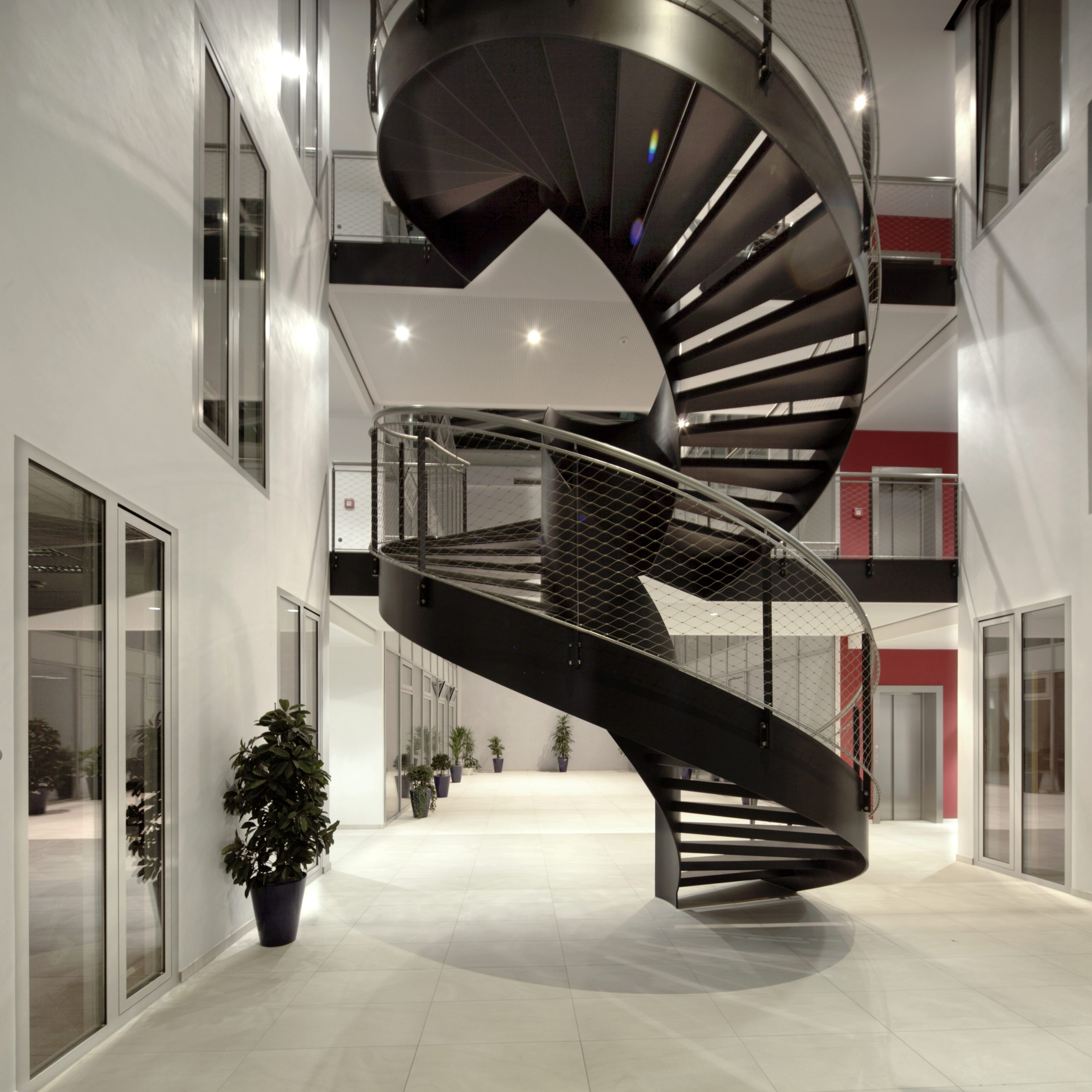 Eine besondere Herausforderung und ingenieurtechnisch auf höchstem Niveau ist das ausgefeilte Brandschutzkonzept des überdachten Innenhofs mit den verglaste Bürofronten.